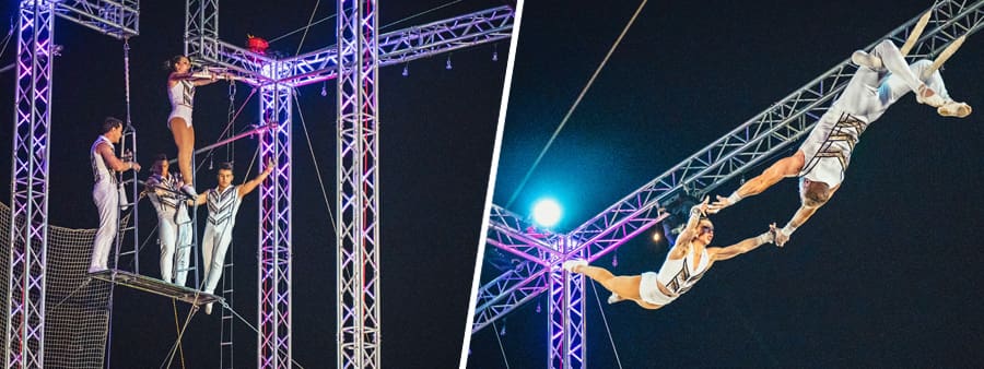 Every night at THE PALACE OF WONDER, located just before the entrance gate, you can enjoy thrilling performances such as the powerful big wheel and the unprecedented hand-to-hand balancing act that has won numerous awards. Don’t miss these breathtaking performances!