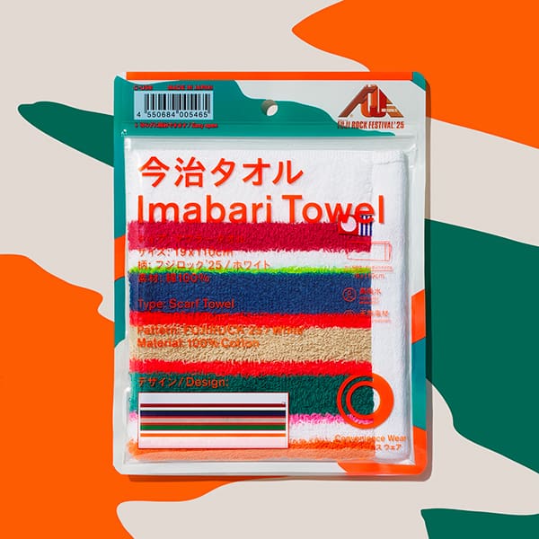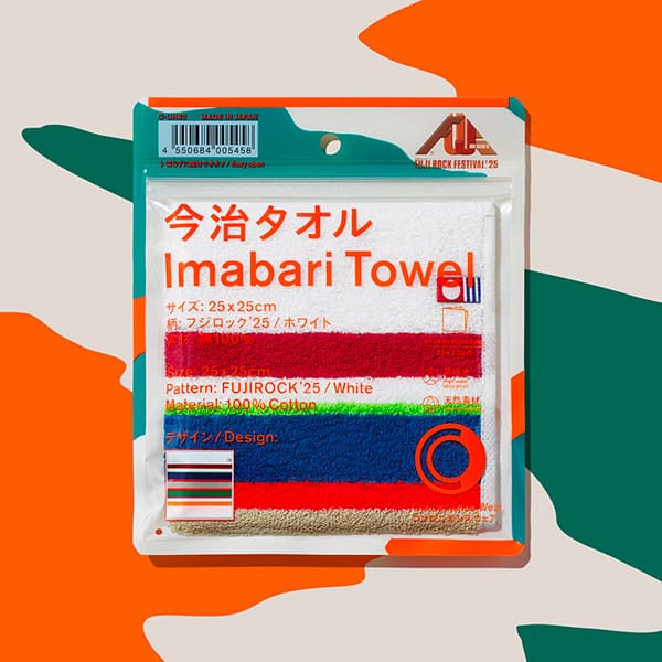 A limited edition towel handkerchief featuring Imabari’s unique high water absorption specifications and a design inspired by the key visual of Fuji Rock ’25.
