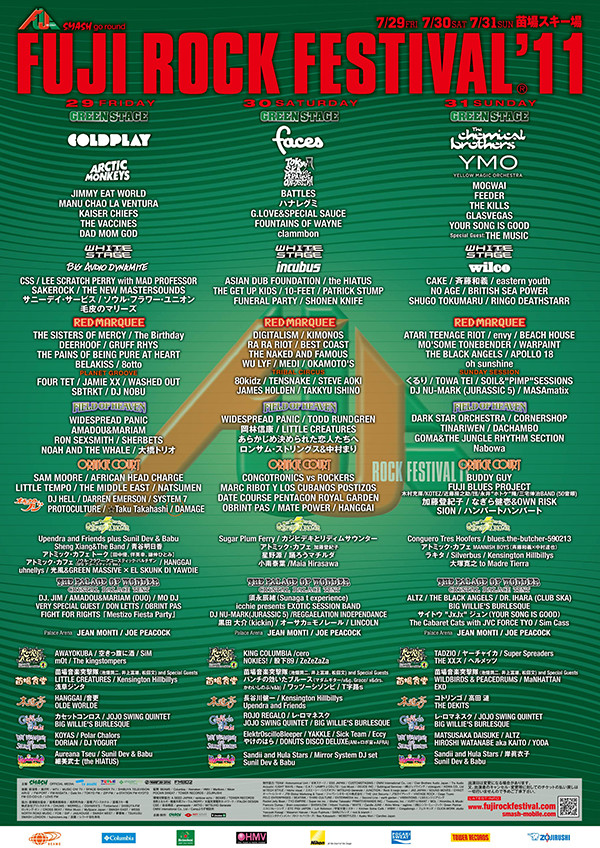 | COLDPLAY | THE FACES | THE CHEMICAL BROTHERS |